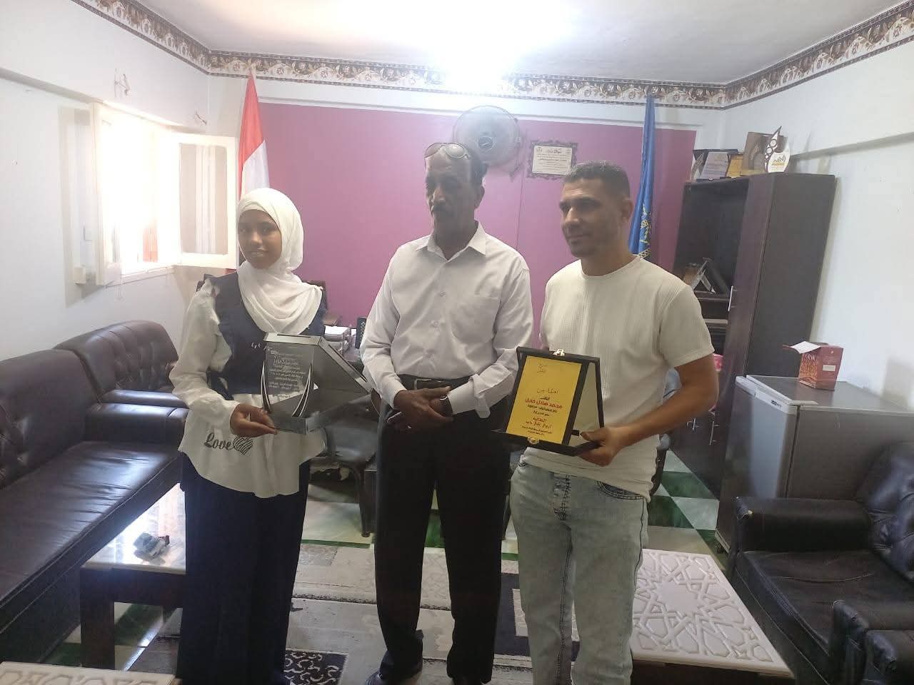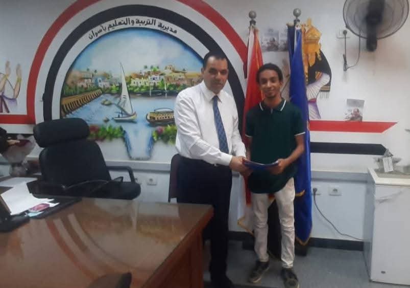 تكريم الدكتور ربيع ابو يوسف وكيل وزارة التربية والتعليم بأسوان والتهنئة للطالب مروان محمود يسري بمدرسة كيما الثانوية في مسابقة الهاكاثون العالمية للسلامة و الصحة المهنية والمؤهل للتصفيات النهائية في جائزة الدولة للمبدع الصغير