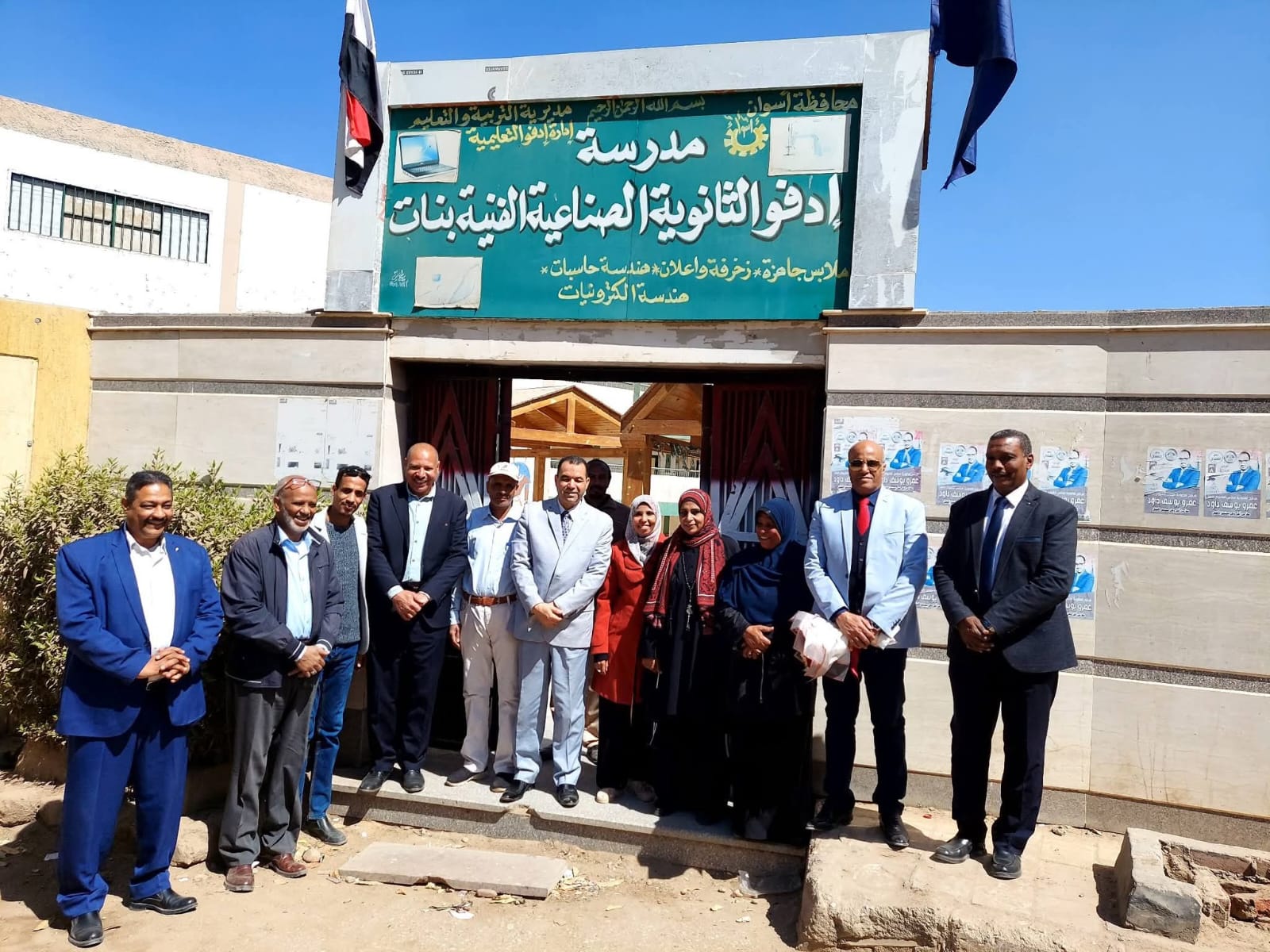 زياره نائب وزير التربية والتعليم للتعليم الفنى ، ومساعد وزير التربية والتعليم للأبنية التعليمية ورئيس الإدارة المركزية لتطوير التعليم الفنى ووكيل تعليم اسوان لمدرسة زين العابدين سيد حسن الزراعية ببنبان ، بحضور ا/محمود نادى مدير إدارة دراو التعليمية ،