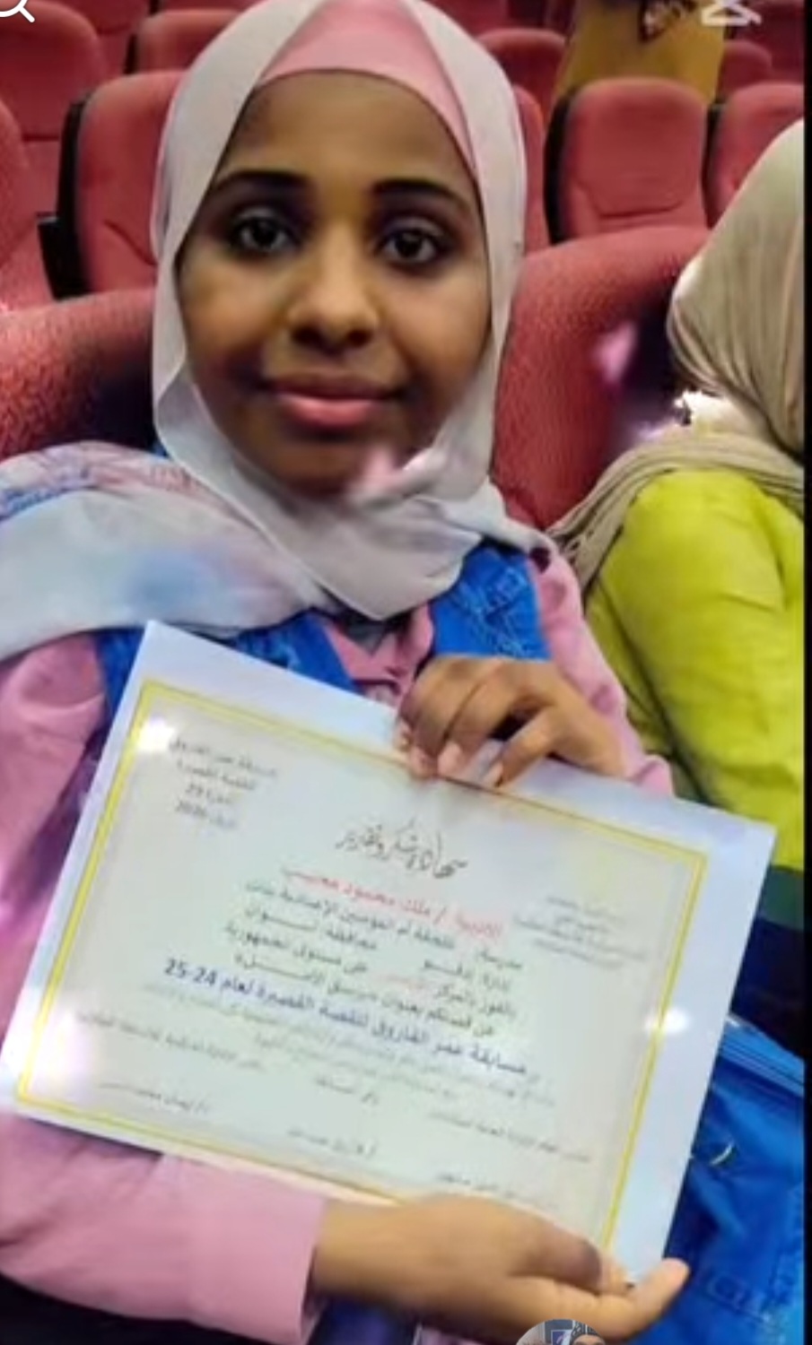 الطالبة آية محمد على الصف الثانى الثانوى بمدرسة محمد صلاح الدين الباقر الثانوية تمثل المديرية فى مسابقة التحدث بالفصحى
