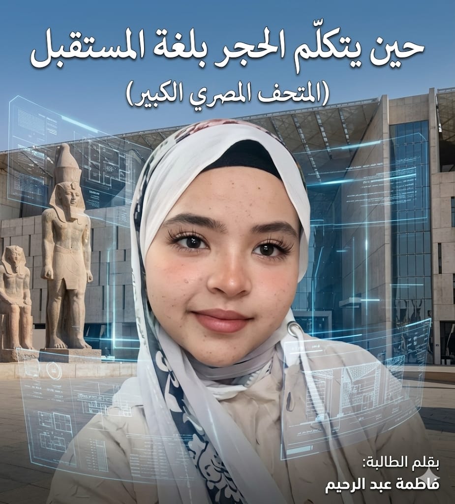 (توجيه الصحافه ) ٢_ يوم الأربعاء الموافق ٤ مارس ٢٠٢٦ فوز الطالبة فاطمة عبد الرحيم بالمركز التاسع فى المقال الخاص بالمتحف المصرى الكبير.. بعنوان حين يتكلم الحجر بلغة المستقبل