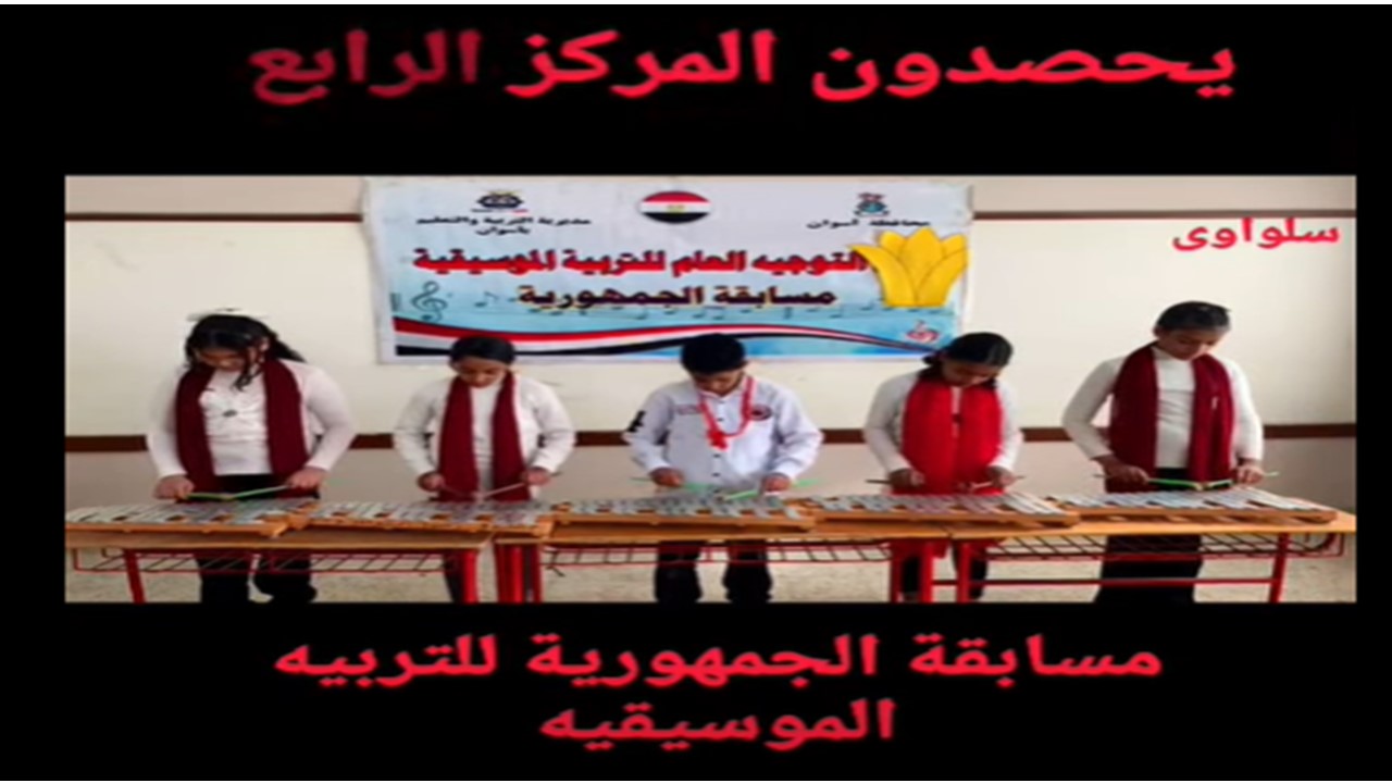 توجيه التربية الموسيقية يحصد المركز الرابع على مستوى الجمهورية فى مسابقة التربية الموسيقية للمرحلة الابتدائية و المدارس الفائزة هي احمد عرابى أ / ومحمد زكى ا / والشيخ محمد متولي الشعراوى أ/ وعمر بن عبدالعزيزا / وام المؤمنين أ